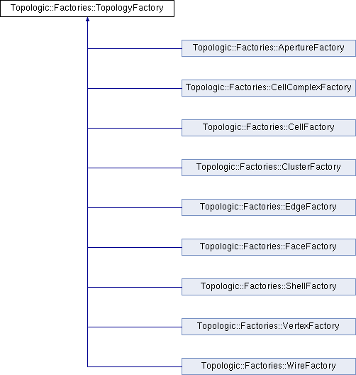 Implemented in Topologic::Factories::ApertureFactory, Topologic::Factories::CellComplexFactory, Topologic::Factories::CellFactory, Topologic::Factories::ClusterFactory, Topologic::Factories::EdgeFactory, Topologic::Factories::FaceFactory, Topologic::Factories::ShellFactory, Topologic::Factories::VertexFactory, and Topologic::Factories::WireFactory.